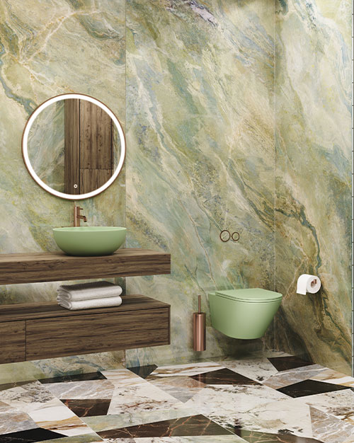 Marmor-look fliser bringer et strejf af luksus og klassisk skønhed til dit badeværelse – perfekt til dig, der ønsker et elegant og dragende udtryk på både gulv og væg.