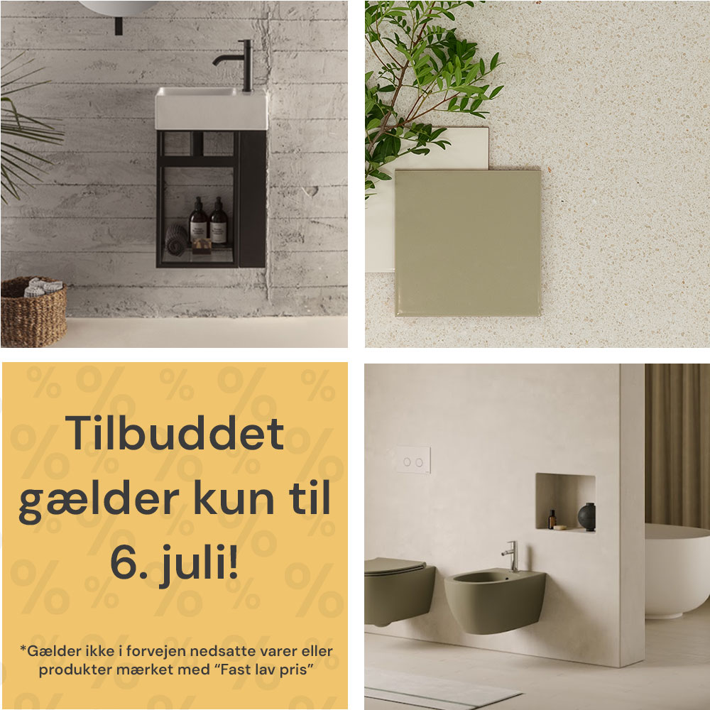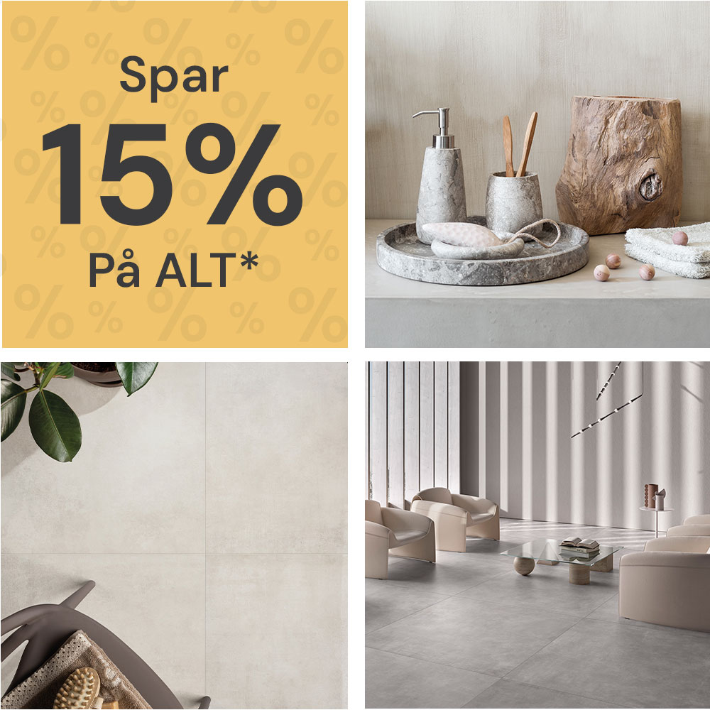 Forvandl dit rum med elegante produkter fra Bad & Fliser. Spar 15% alt fra den 23. juni til den 6. juni – både online og i butik.