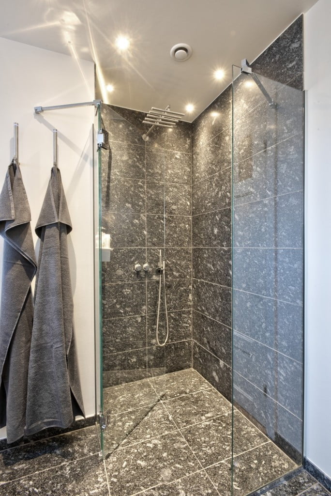 Samme flise på gulv og væg skaber sammenhæng