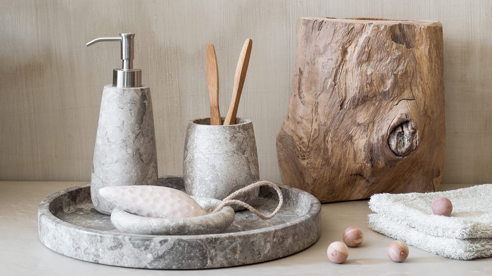 Unikt badeværelsestilbehør i natursten