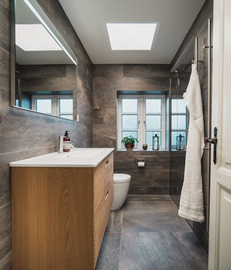 Da vores indretningskonsulent Leif fik opgaven om at skabe to eksklusive badeværelser, for en kunde på Ærø gik han straks i gang med at undersøge hvordan pladsen bedst muligt kunne udnyttes.